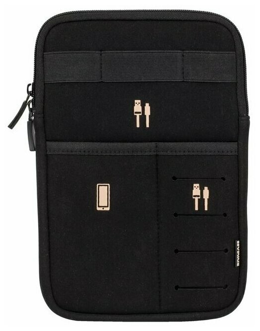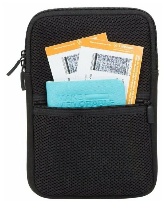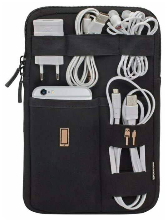 RivaCase Travel Organizer - это чехол для планшета и хранения аксессуаров. Основное отделение подходит для большинства 7-8 дюймовых планшетов. Чехол имеет сетчатый карман на молнии для мелких предметов, внешний карман и карман с петлями для кабелей. Материал изделия - неопрен.