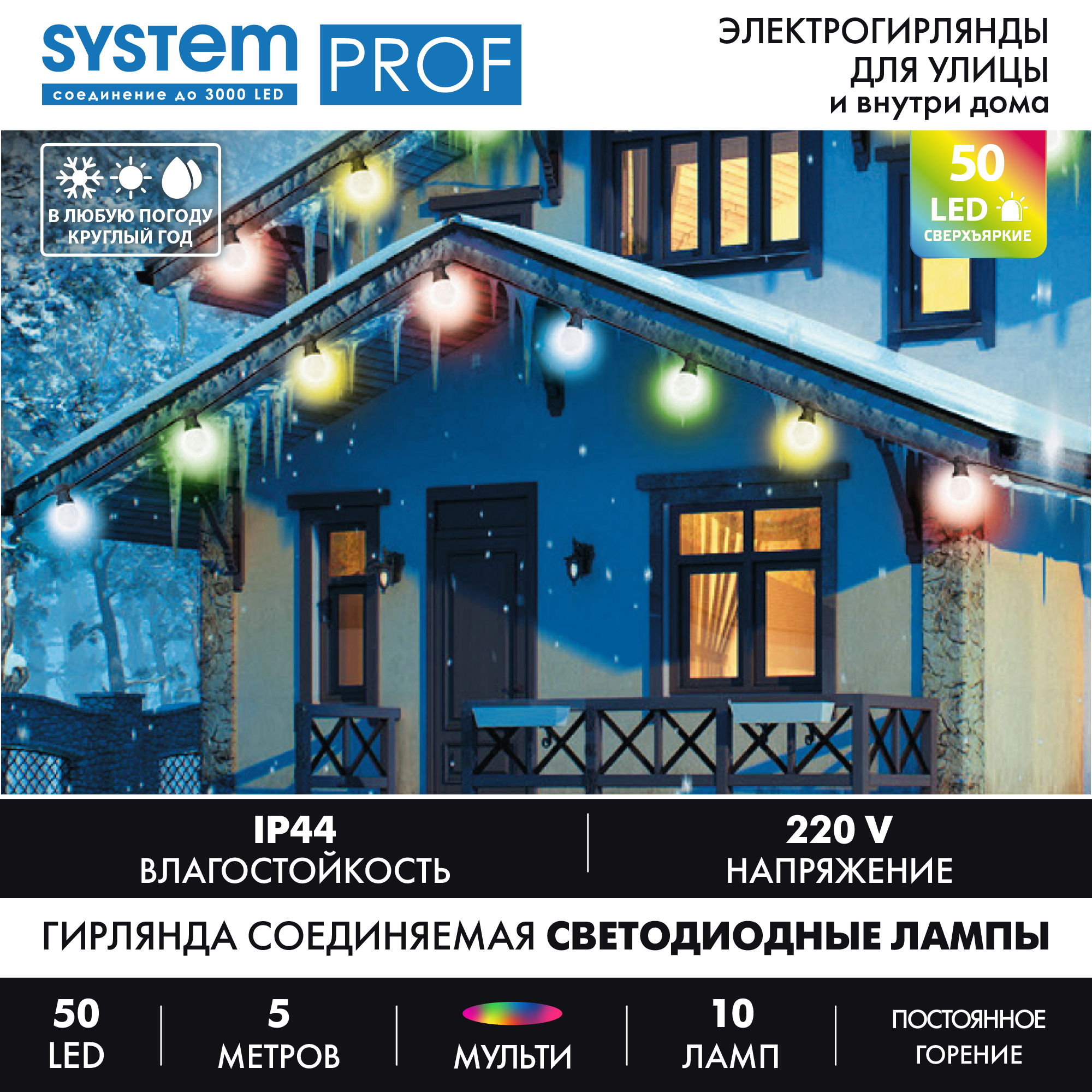 Веселый детский смех и лязг коньков сопровождает шествие снежной королевы, аккуратно развешивающей ледяные кристаллы по крышам домов. Такая красота не должна остаться незамеченной, лучшим оформлением для нее станет электрогирлянда Лампы. Декоративное освещение выполнено в ретро стиле. 50 светодиодов в форме ламп накаливания расположены в ряд. Серия декоративного освещения System Prof позволяет создавать завораживающую иллюминацию для частных домов внутри и снаружи. Модули одной серии соединяются при помощи специальных коннекторов, что дает возможность соединять гирлянды длиной до 3 тысяч светодиодов. Достоинства и преимущества - разноцветный свет - постоянное горение - ретро стиль - соединение до 3000 LED - всесезонное использование Область применения Светодиодная гирлянда будет хорошо смотреться на фасаде вашего загородного коттеджа. Кроме того, ее с успехом можно использовать внутри комнат, над каминной полкой или в оконном проеме. Гирлянда с большими лампочками может эффектно украсить высокую новогоднюю ель на улице или дома.