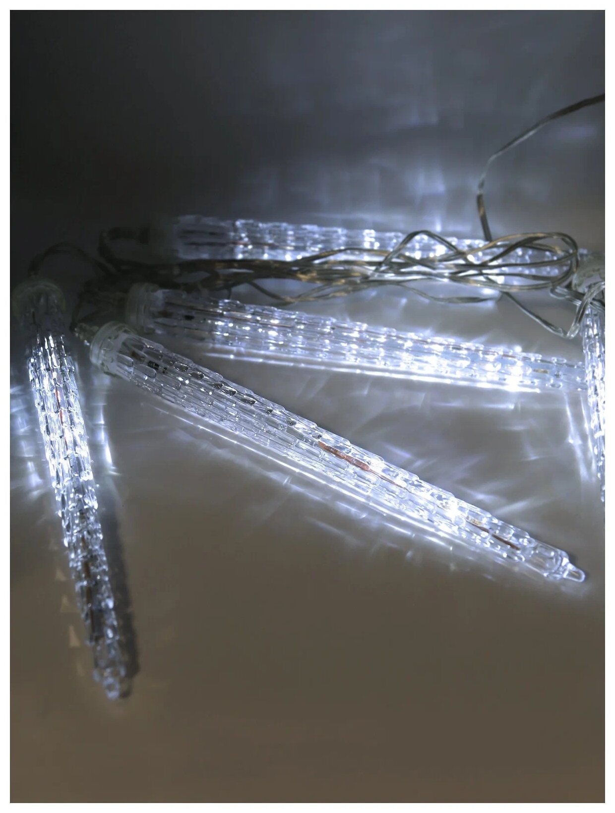 Электрогирлянда «Тающие сосульки» благодаря эффекту стекания светодиодов, гирлянда превратит ваш дом в волшебный замок! Красивые, струящиеся, лаконичные сосульки станут отличным украшением вашего жилища. Электрогирлянда представляет собой гибкий провод прозрачного цвета, на котором расположены насадки в виде сосулек. Электрогирлянда яркая и долговечная, имеет низкое энергопотребление и предназначена для оформления высоких елей и деревьев, фасадов домов и карнизов зданий. Наличие специальных коннекторов позволяет удлинить электрогирлянду до 7,5 м. Большое преимущество LED – это до 10 раз экономии электроэнергии (в сравнении с лампами накаливания). Можно использовать снаружи и внутри помещений.