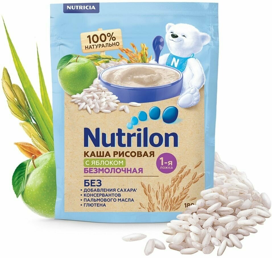 Каши Nutrilon – 100% натуральные каши без искусственных добавок, красителей и консервантов, в составе которых только злаки с природным содержанием витаминов и минералов. Мы тщательно отбираем сырье и производим детские каши по высоким стандартам качества! Каждая партия каш соответствует требованиям пищевой безопасности Европы и Российской Федерации и проверяется по физико-химическим и микробиологическим параметрам. Каша безмолочная сухая быстрорастворимая рисовая низкоаллергенная Nutrilon®, для питания детей с 4 месяцев, согласно требованиям норм законодательства России и Республики Казахстан. Для оптимального роста, развития и здоровья малыша Всемирная Организация Здравоохранения рекомендует исключительно грудное вскармливание в первые 6 месяцев жизни и последующее введение прикорма при продолжении грудного вскармливания. Nutricia поддерживает данные рекомендации.