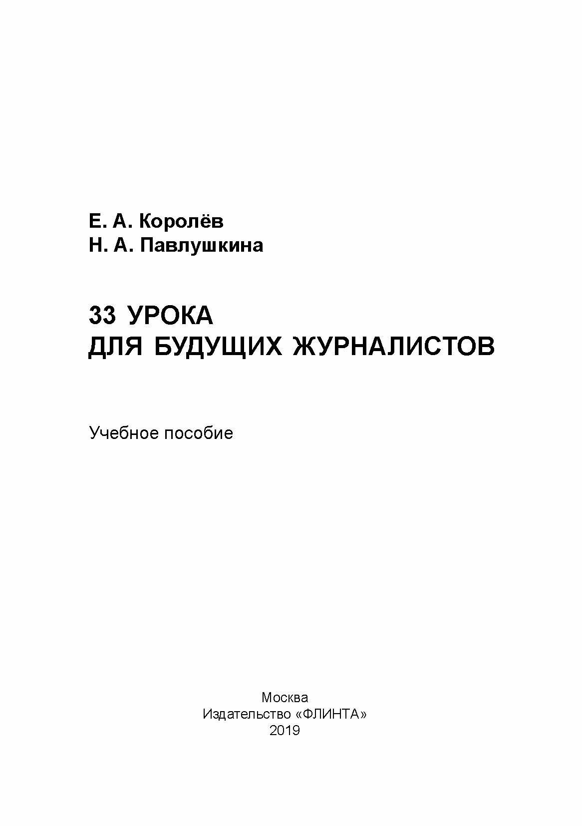 33 урока для будущих журналистов. Учебное пособие (Королев Егор Алексеевич, Павлушкина Наталья Анатольевна); Флинта, 2019