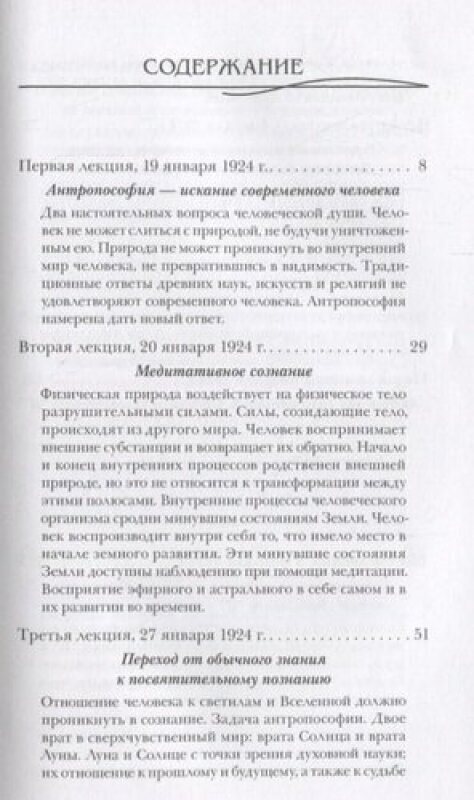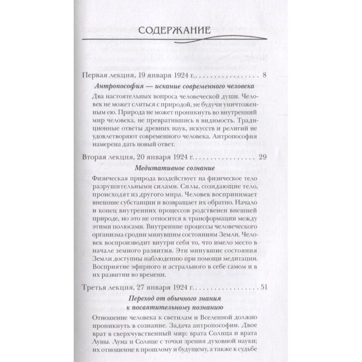 Рассматривая взаимодействие человека и природы, Рудольф Штайнер подводит к выводу, что и облик человека, и его сущность происходят из внеземного, нефизического мира. Штайнер показывает, как, укрепив мышление, добиться следующих степеней познания действительности. Анализируя необычные ракурсы человеческой жизни в противоречиях между событиями бодрственной жизни и сновидениями, сновидениями и воспоминаниями, воспоминаниями и тем, что ускользнуло от памяти, и дополняя эти рассуждения опытом сверчувственного познания, автор рисует картины прохождения человеком не только земной жизни, но и духовных миров. Четкие логические построения шаг за шагом вводят читателя в систему понятий антропософии - посвятительной науки нашего времени.