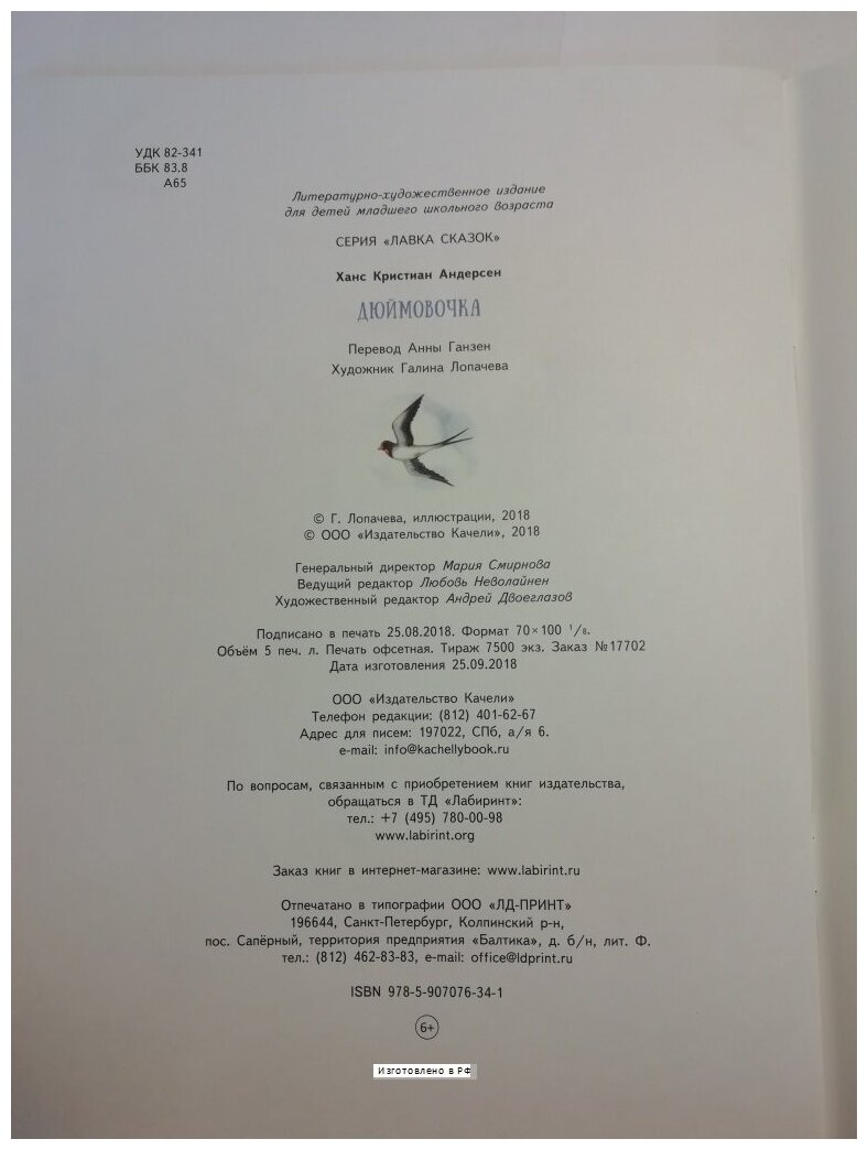 Книга: Дюймовочка (Ганс Христиан Андерсен); Качели, 2018