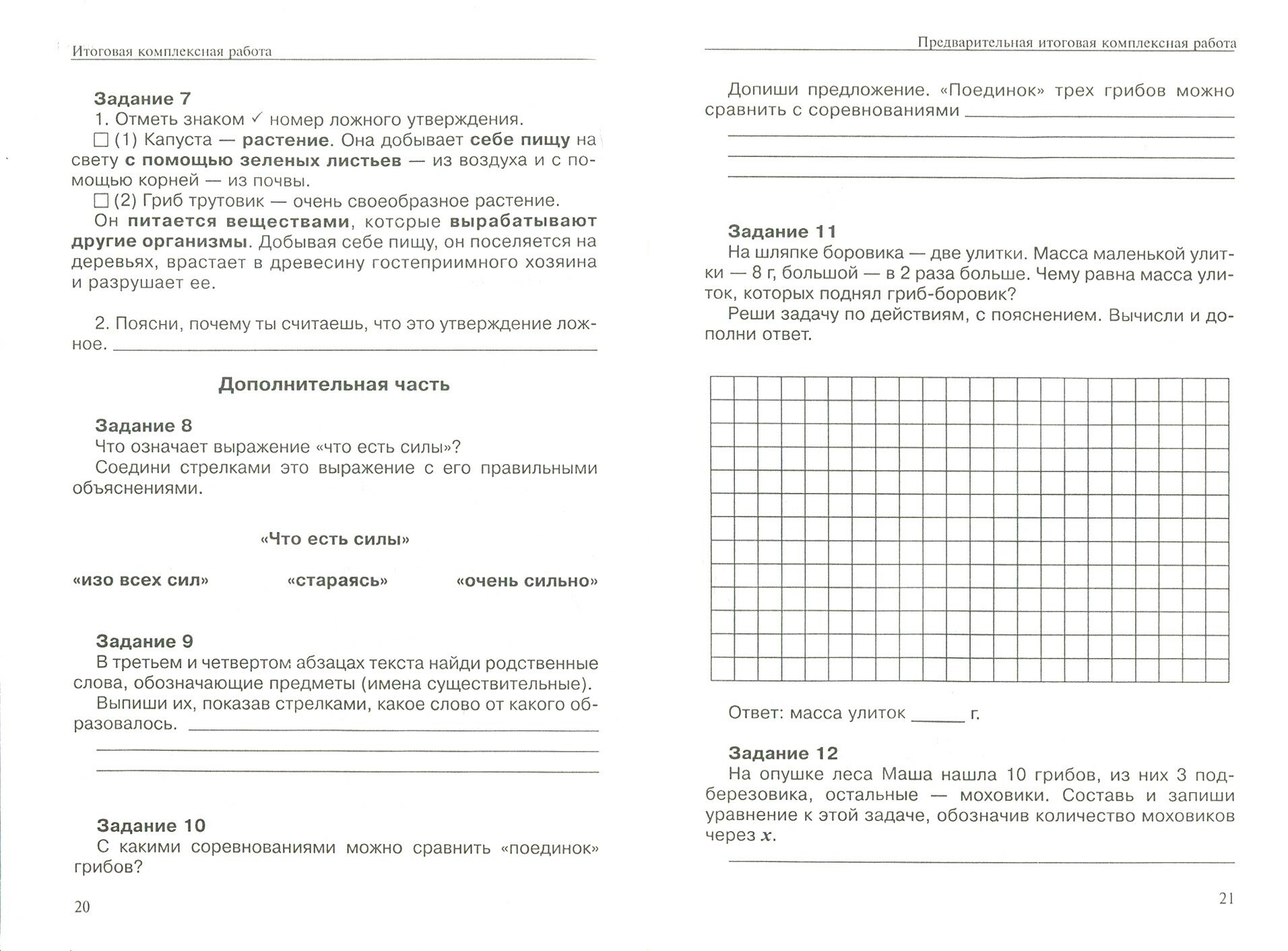 Комплексная работа для 2 класса - вторая часть общего пакета итоговых комплексных работ для начальной общеобразовательной школы. Их назначение - выявление уровня (базового или повышенного) сформированное наиболее существенных и значимых для дальнейшего обучения универсальных учебных действий.