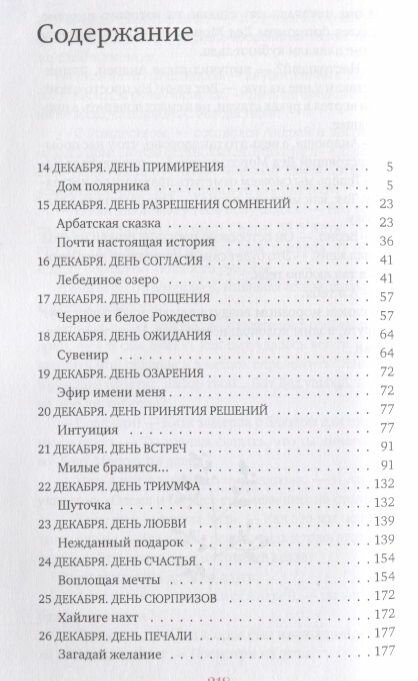Книга «Подарок на Рождество» произвела на меня хорошее впечатление: понравилось красивое оформление обложки и тем, простой и доступный язык, рассказы составлены по датам (начиная с 14 декабря и кончая 7 января). Прекрасно придумано: в определенный день календаря читаешь рассказ, который стоит под определенной датой, например, 15 декабря читаешь рассказ за 15 декабря. Мне такой подход пришелся по душе. Правда, все рассказы разной длинны, есть 3-5 страниц, а есть и более 20 страниц. А один рассказ аж на 40 страниц - рассказ за 21 декабря «Милые бранятся» длиной в 40 с лишним страниц. Он о журналистке Алисе Раевской и ее любимом человеке Никите. Автор очень интересно рассказывает о непростых отношениях людей. Но все рассказы очень интересные и даже самые большие дочитываются до конца всего за один день. Настоятельно рекомендую книгу к прочтению, не пожалеете.