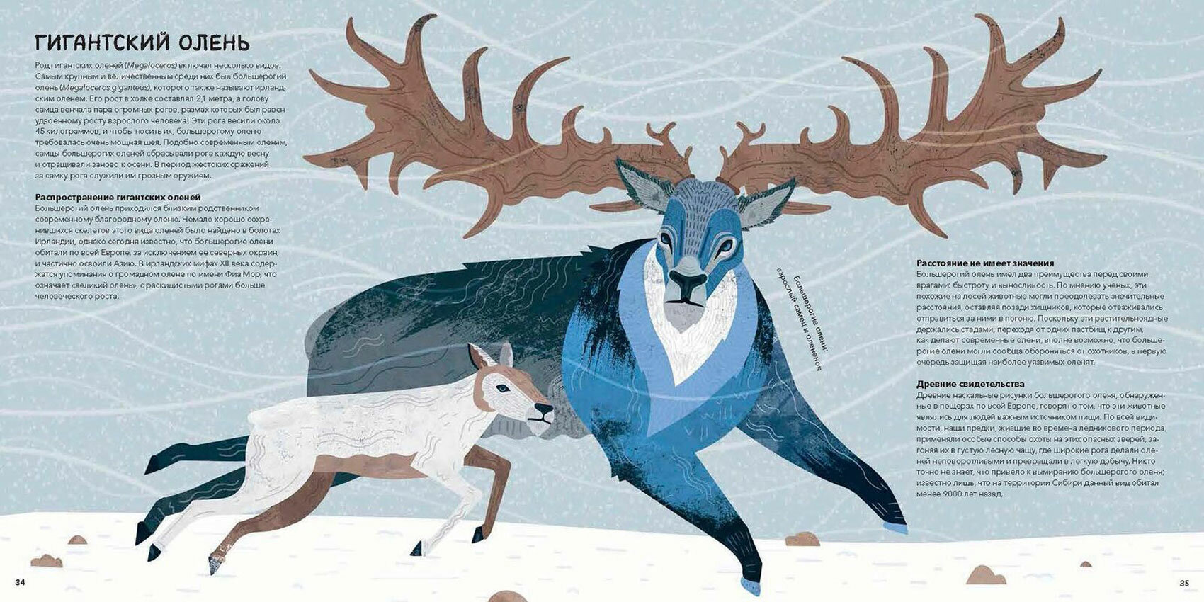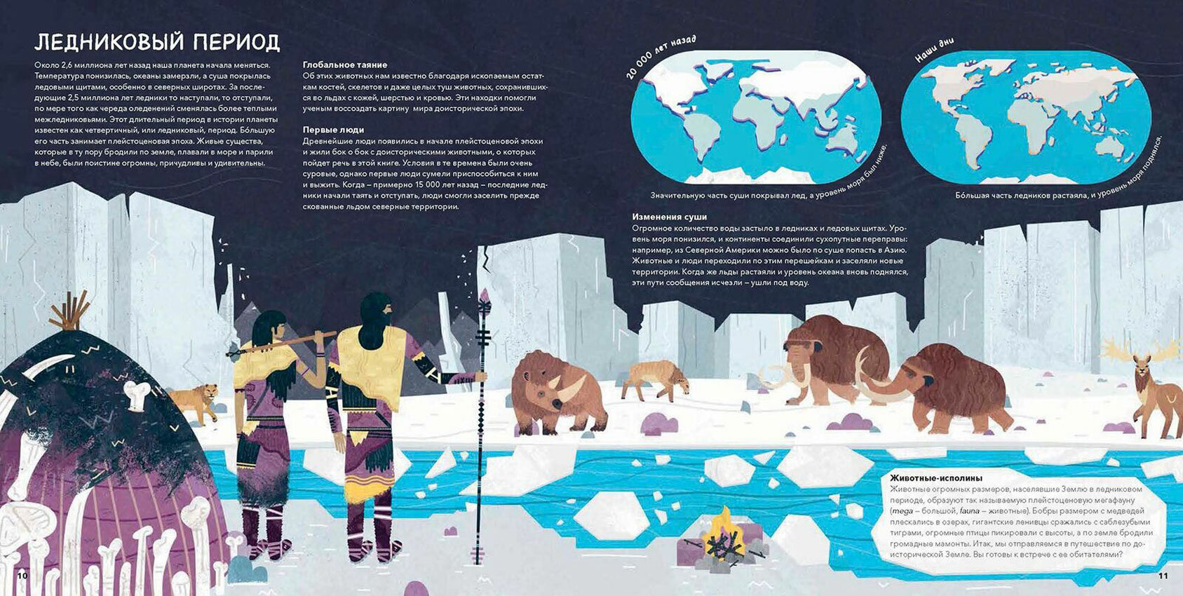 Книга вау-формата с раскладными страницами создает панораму жизни на Земле во времена последнего ледникового периода, большую часть которого занимает эпоха плейстоцена.