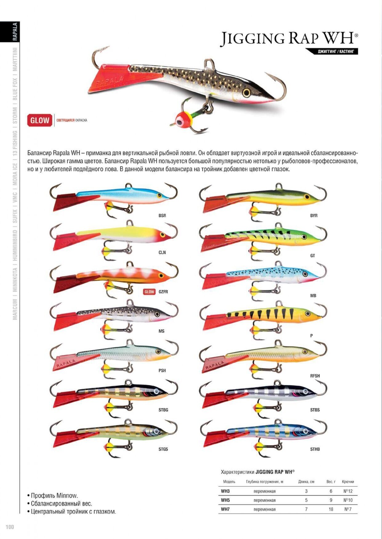 Балансир Rapala WH — приманка для вертикальной рыбной ловли. Он обладает виртуозной игрой и идеальной сбалансированностью. Широкая гамма цветов. Балансир Rapala WH пользуется большой популярностью не только у рыболовов-профессионалов, но и у любителей подлёдного лова. В данной модели балансира на тройник добавлен цветной глазок, хвостовая часть окрашена в красный цвет. В зависимости от размеров подходит для ловли любых хищников наших водоемов - окуня, щуки, судака. Финская компания Rapala давно зарекомендовала себя, как высококлассный производитель воблеров и блесен. Также они достигли вершины в производстве балансиров, как известно Финляндия достаточно северная страна и зимняя рыбалка там распространена очень широко. Балансиры Rapala прекрасно выполнены, оснащены хорошей фурнитурой, отлично играют, в том числе и "восьмерочку", а самое главное - их используют рыбаки по всему свету, уже более сорока лет. Разнообразие цветов и размеров позволит Вам подобрать приманку исключительно под Ваши условия ловли. На северо-западе России прекрасно показали себя по окуню и щуке два цвета: BYR - знаменитая "жаба" и CW - песчаный окунь.