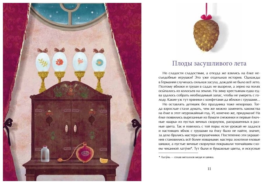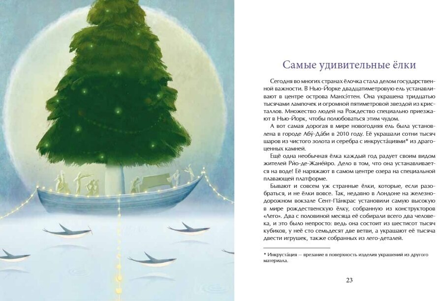 а в книге куча полезной информации которую просто нужно знать, о том как появилась традиция ставить елку,где и когда.О том что ёлку какое-то время не ставили) О Ёлках-Палках и еще много много всего интересного) Прям вот замечательная книга от замечательного издательства!!!