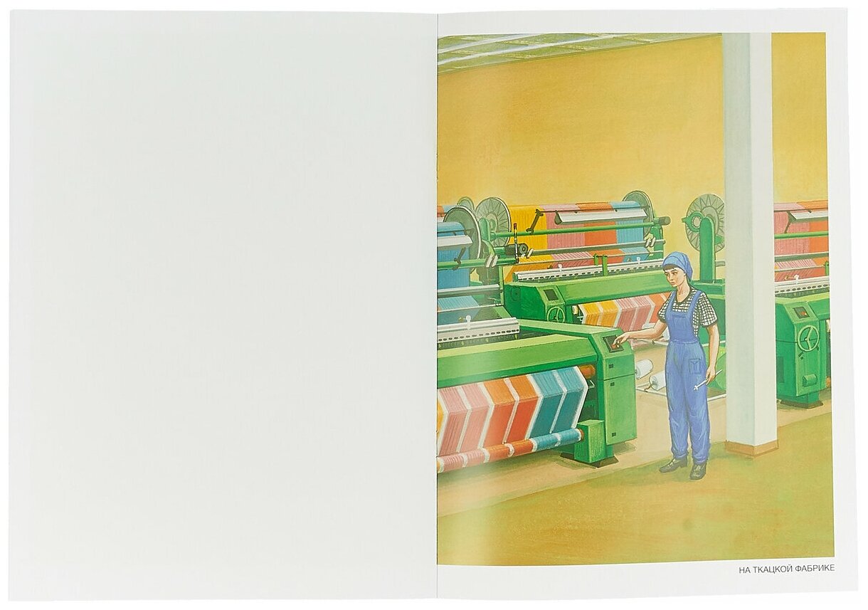 Прекрасное демонстрационное пособие осстоит из 9 картин , рассказывающих и профессиях людей.Исключительно удачно подобраны иллюстрации , освещающие такие непопулярные , на первый взгляд , профессии как профессию птичницы.но как легко и удоюно специалисту работать с такими изданиями.Все четко, реалистично , прописаны даже самые мелкие детали и предметы труда.Формат А3 , выполнены картины на полукортоне , скреплены пружиной.