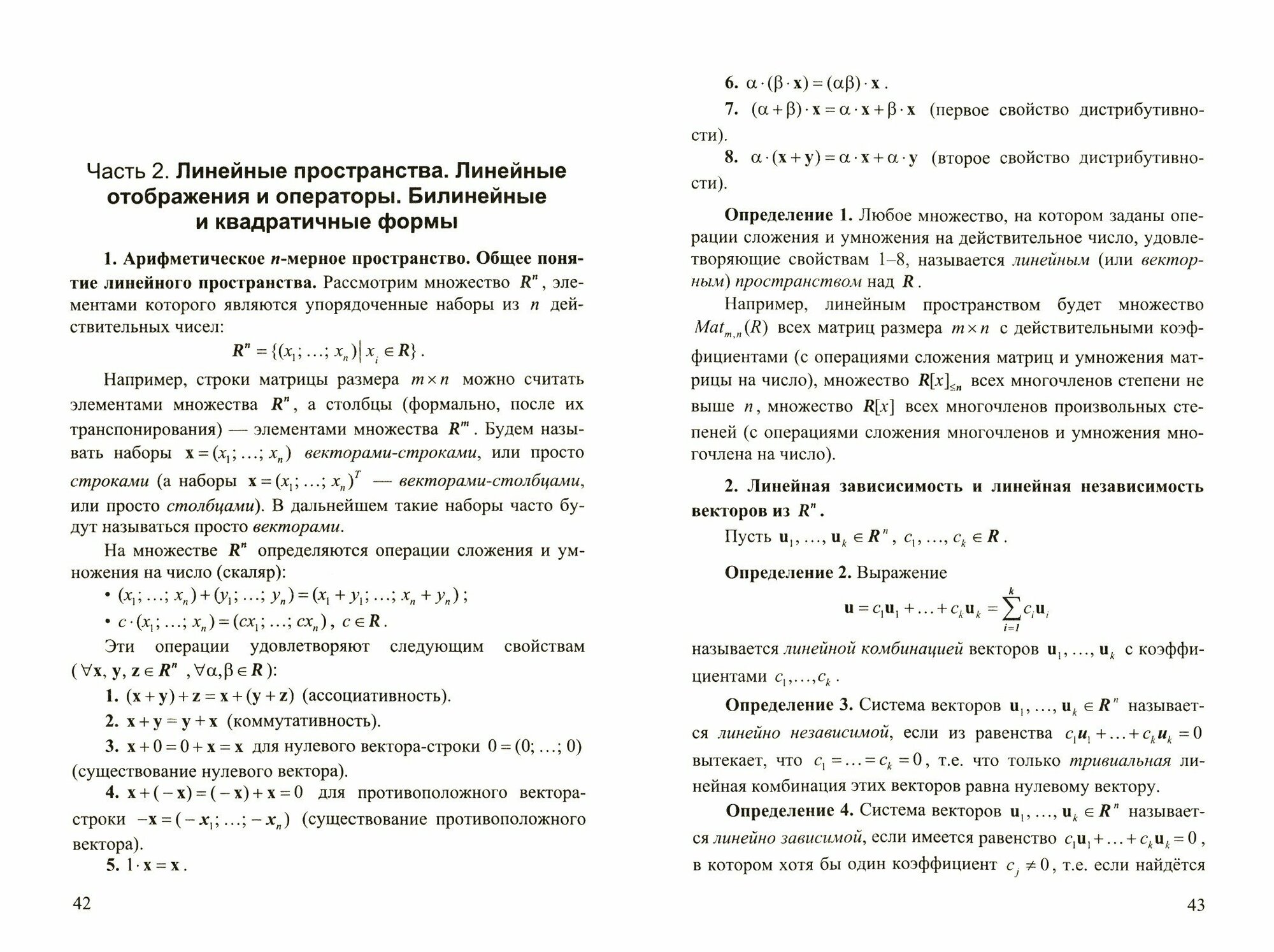 Учебное пособие представляет собой достаточно полное изложение лекционного курса линейной алгебры, традиционно читаемого на ряде естественных факультетов МГУ им. М.В. Ломоносова. Курс рассчитан в основном на студентов, использующих методы линейной алгебры в приложении к другим дисциплинам, поэтому он дополнен разбором большого количества практических примеров и задач.