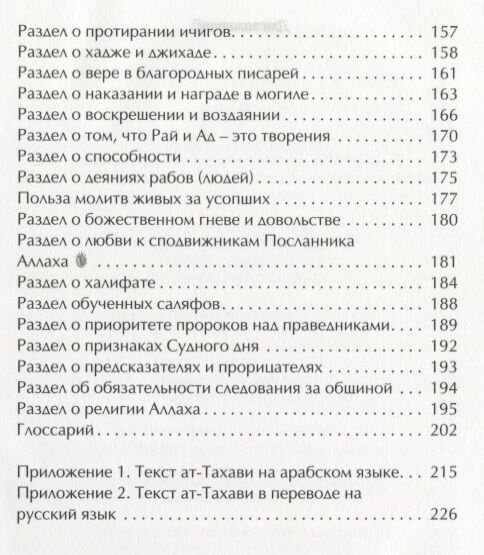 В книге приводится шарх на русском языке и текст имама ат-Тахави на арабском языке.