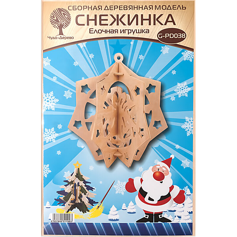 Сборная деревянная модель Wooden Toys Елочная игрушка Снежинка 8 (G-PD038)