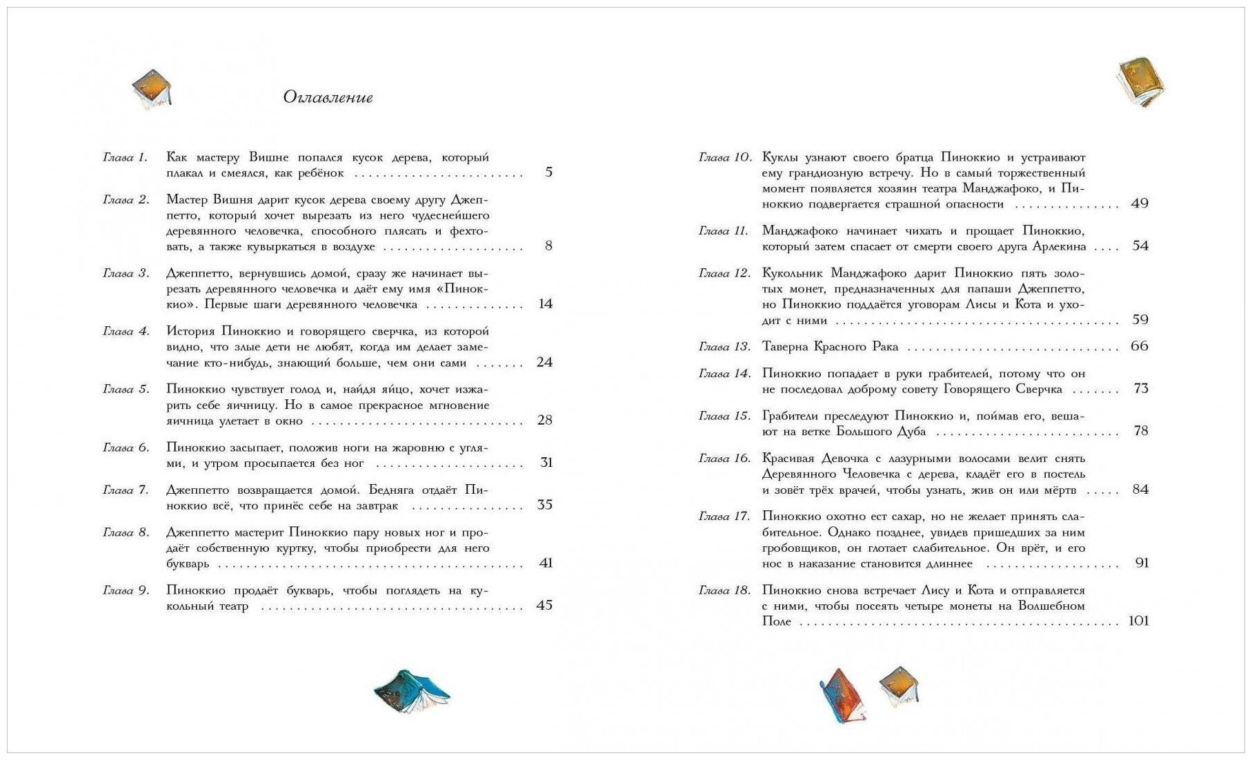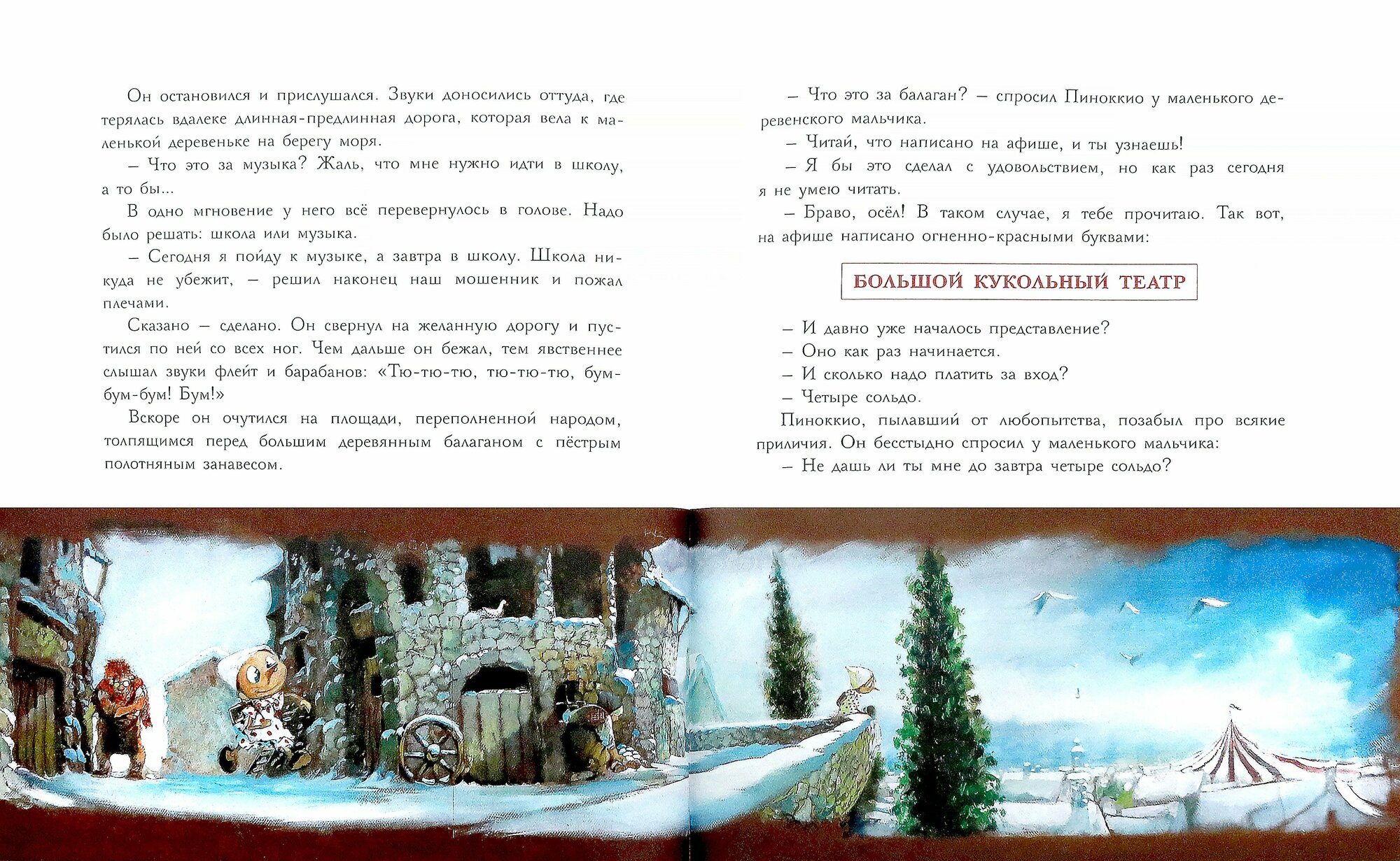 Недостаток- рисунки на разворот. Изображение уходит в сгиб. Там зачастую целый Пиноккио или даже ослик теряются.