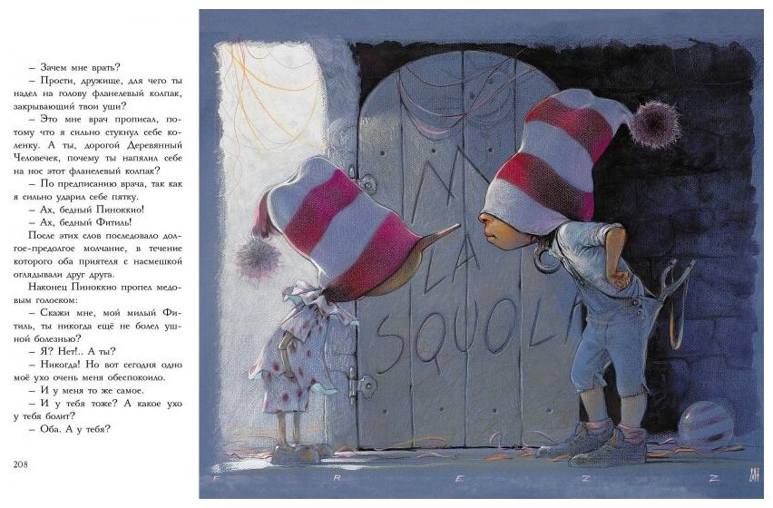 История о деревянном мальчике Пиноккио не теряет своей популярности уже более ста лет не только среди читателей, но и среди художников. Иллюстрации к этому изданию создал Массимилиано Фреццато - один из лучших современных итальянских художников. Ещё в детстве он мечтал научиться рисовать так красиво, чтобы рисунки поражали его самого. Сегодня серии работ Фреццато, самая известная из которых "Хранители Мазера", популярны во многих странах мира.