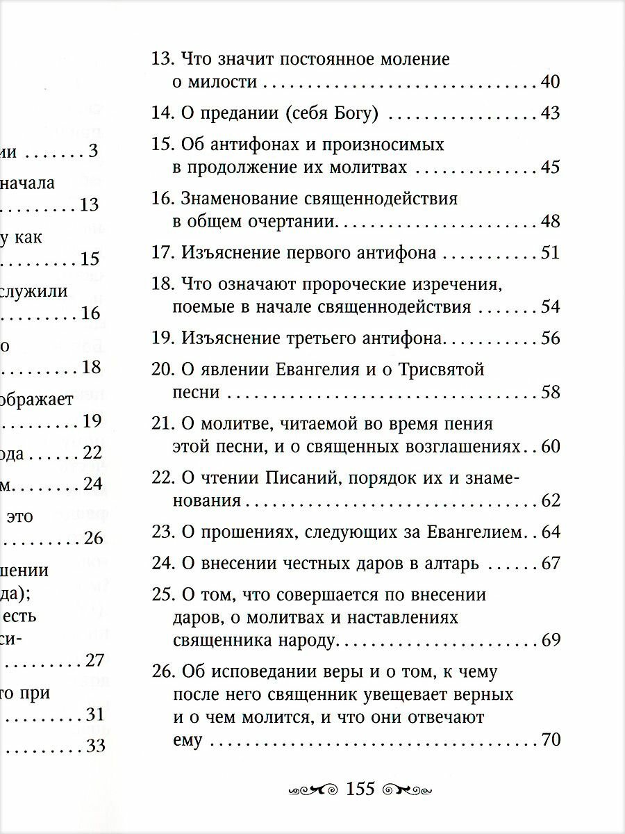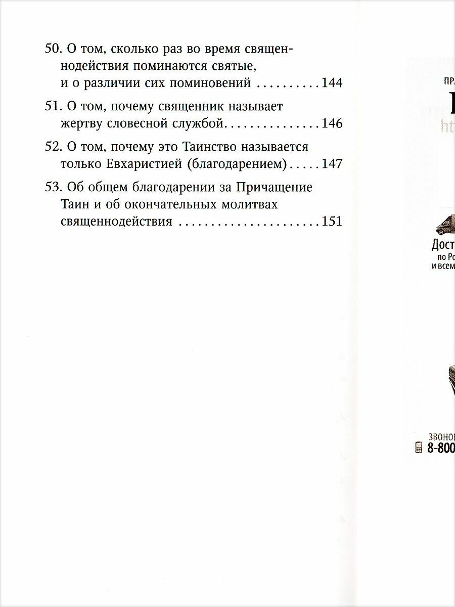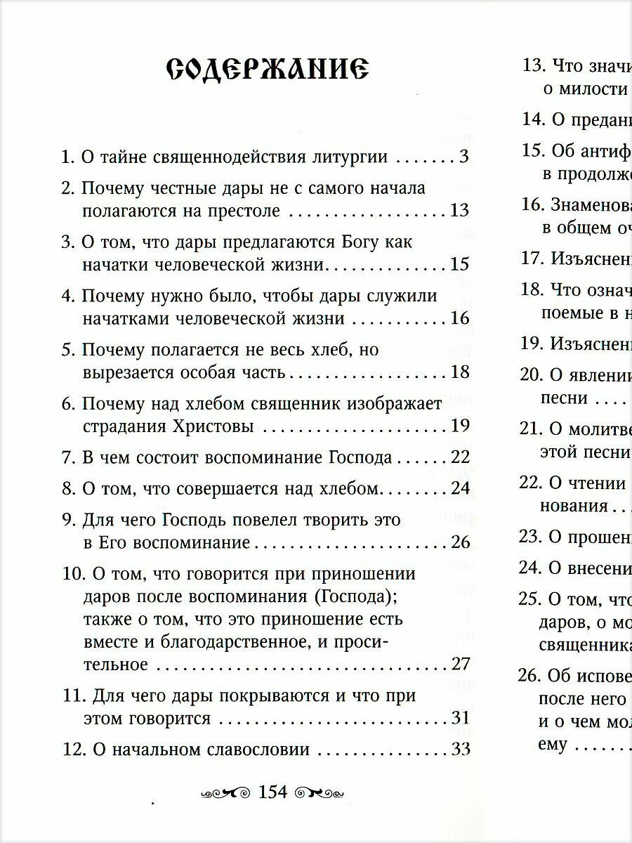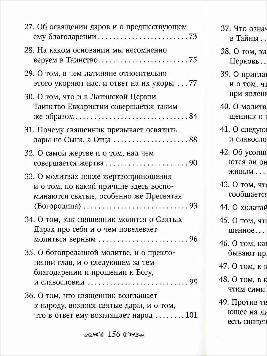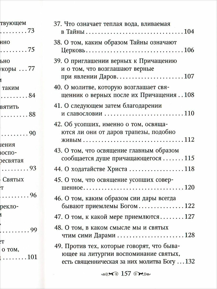 В книге «Изъяснение Божественной Литургии» святой праведный Николай Кавасила излагает церковное учение о символическом значении всех составных частей и священнодействий Божественной Литургии, а также разъясняет различные вопросы, связанные с подготовкой к ней и совершением ее.