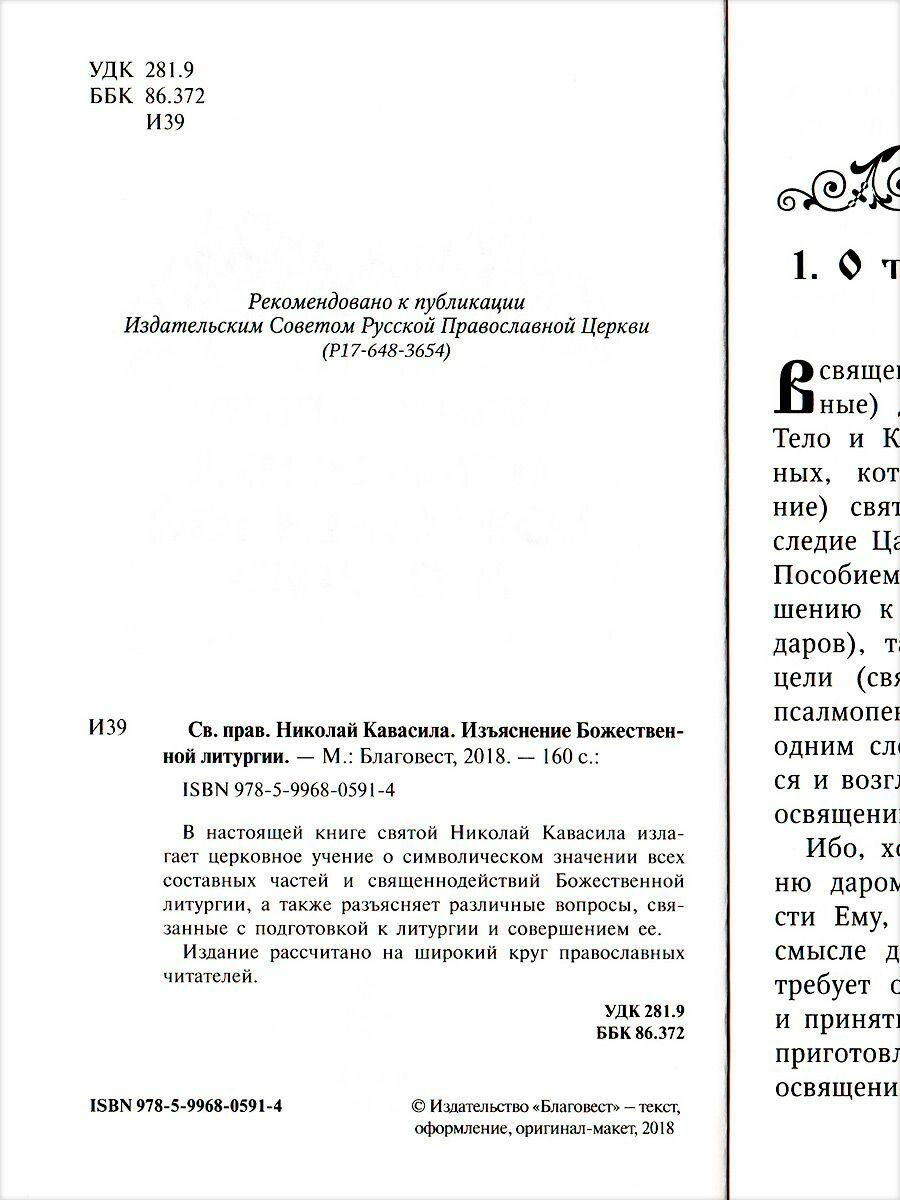 Изъяснение Божественной Литургии (Святой Николай Кавасила); Благовест, 2018