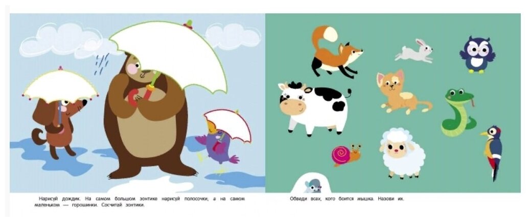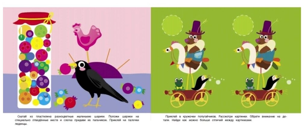 В составе альбома 24 задания для детей: счёт до 5, дорисовать детали ( пальчиком, кисточкой), задания с использованием пластилиновых шариков, головоломка, лабиринт, судоку, объединение предметов по смыслу и цвету. Конкретные задания не повторяются с другими альбомами, но принцип заданий аналогичный. Мы начали использовать альбом этой серии в 3,2 года, все задания смогли выполнить. Задания действительно интересные и занимательные. В составе два задания на зимнюю тематику.