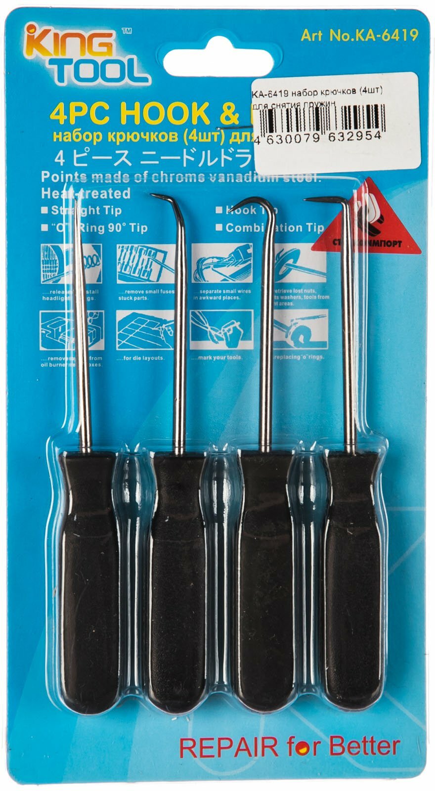 Набор крючков для снятия пружин KT TOOLS СтанкоИмпорт Ka-6419