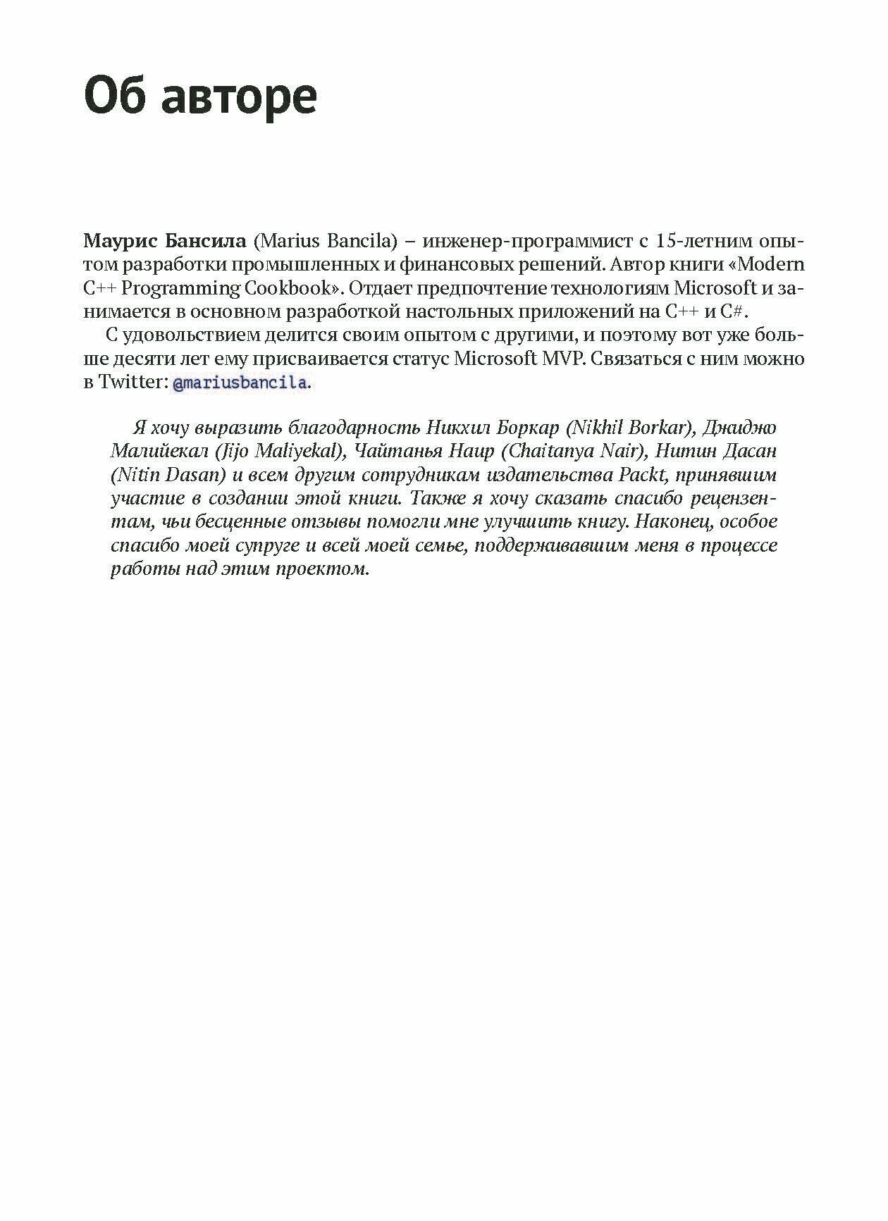 Издание будет очень полезно студентам профильных вузов, всем тем, кто решил освоить язык С++17 самостоятельно, и, конечно, IT-профессионалам, предпочитающим изучение нового стандарта через практическую, а не теоретическую призму.
