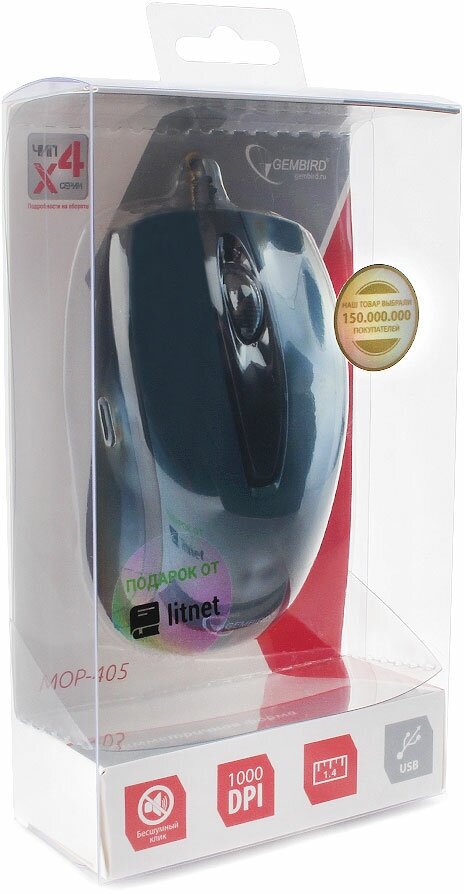 | Прочее | Армированный кабель Полноразмерная компьютерная мышь Бесшумные кнопки Симметричная форма |