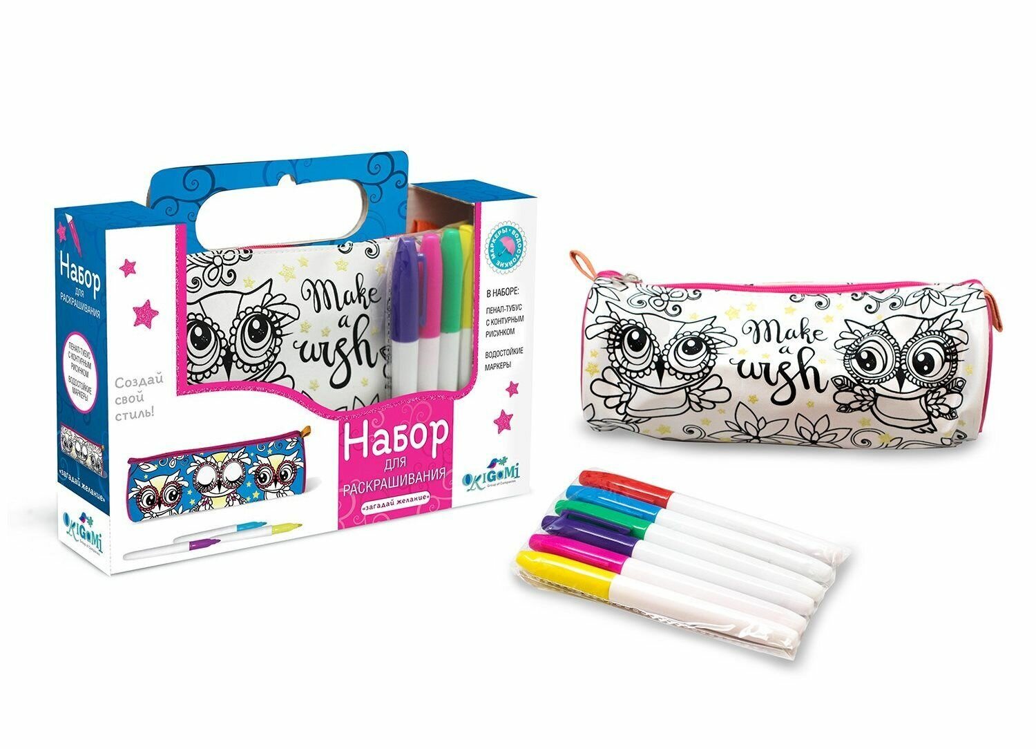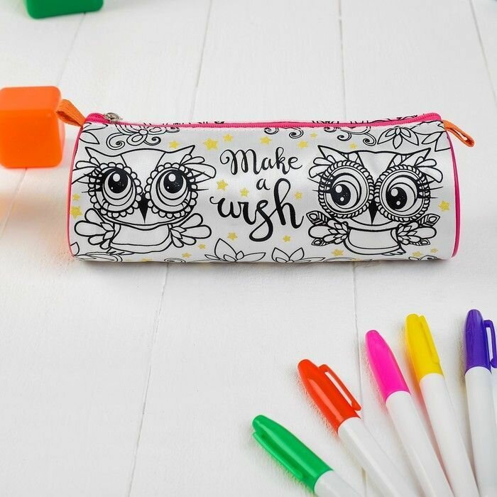 Набор для раскрашивания «Совушки» приятно порадует вашего ребенка. С помощью данного набора ребенок сможет создать оригинальный пенал-тубус по собственныму дизайну. Пенал очень функционален, в него можно положить все необходимое. Отлично подходит для хранения письменных принадлежностей. Развивает мелкую моторику рук, творческие способности, художественные навыки, сенсорное и визуальное восприятие, воображение.