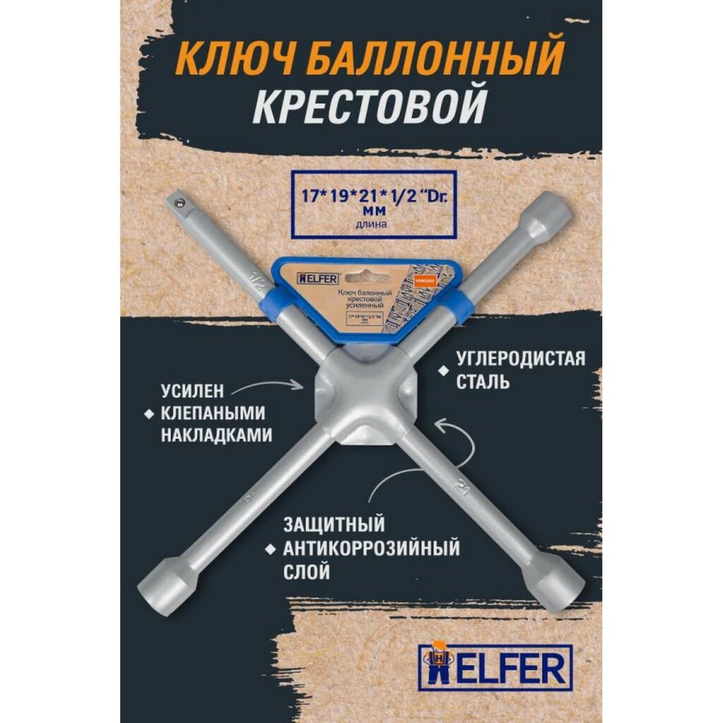 Усиленный крестовой баллонный ключ HELFER Hf002205 (размер: 17х19х21)