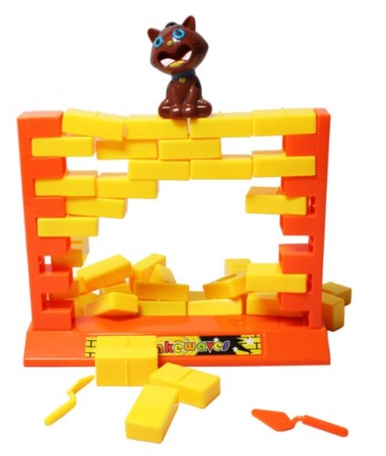 Удачное дополнение к правилам игры — полосатый пластмассовый кот, который устанавливается на вершине конструкции в начале раунда. Теперь даже самые маленькие игроки понимают: их цель — как можно дольше не тревожить полосатого хозяина стены!