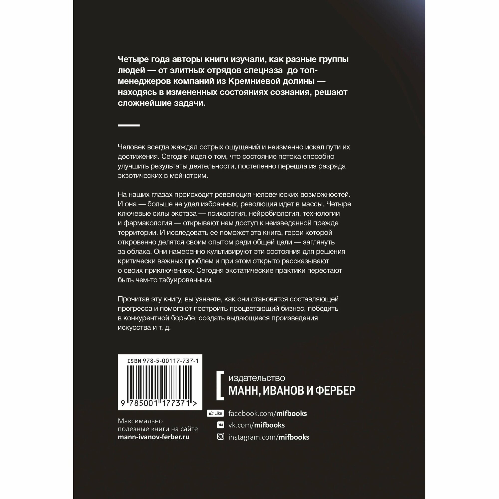 Авторы этой книги на протяжении 4 лет исследовали, как разные группы - от отрядов спецназа и тренировочного центра RedBull до ООН и топ-менеджеров из Кремниевой долины - используют состояния измененного сознания для решения сложнейших задач.