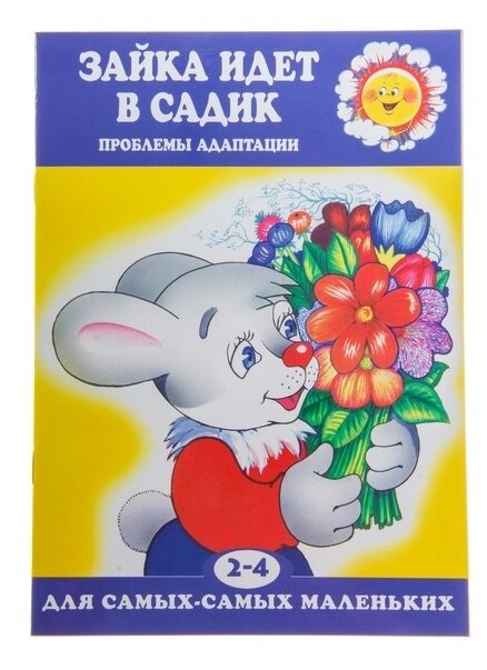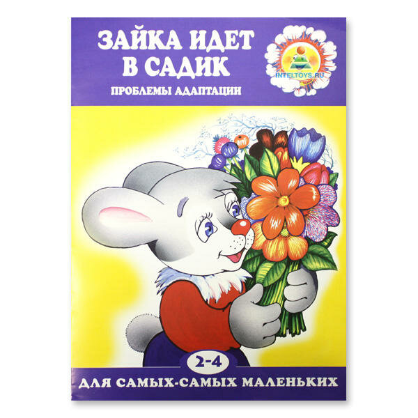 Тонкая книжка формата А4 о том, как зайка собирался в садик(прошел врача) и как провел свой первый день в детском саду: гулял, кушал, спал, пришла мама и вечером зайка рассказал маме, что с ним произошло в садике.
