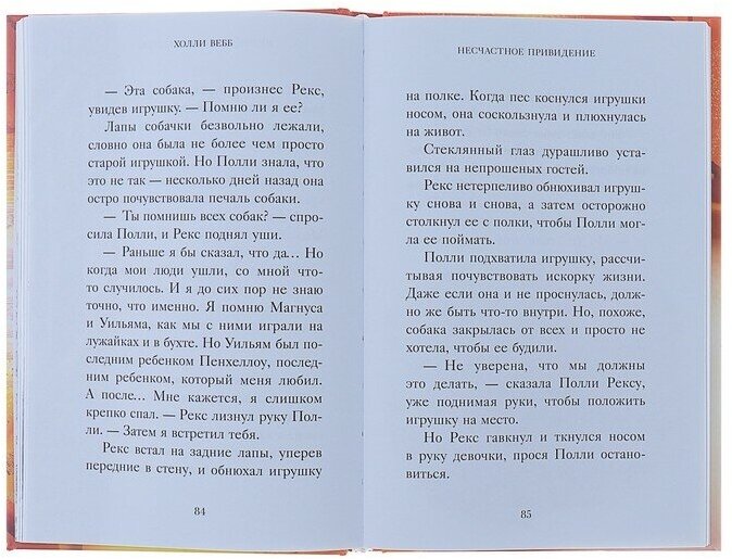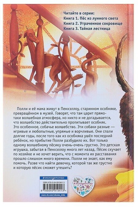 Полли и её друг Рекс — не простые девочка и собака. Точнее, Полли совершенно обычная девочка, а Рекс — дух-хранитель старинного особняка Пенхэллоу. И весь этот огромный особняк полон собак: они высовывают мордочки из барельефов и балясин, смотрят с картин, сидят статуями и статуэтками. Все они когда-то жили тут, в Пенхэллоу, и навсегда остались его хранителями. И вот одному такому волшебному пёсику настолько грустно, что даже Полли это почувствовала. Давным-давно маленькая девочка забыла игрушку в комнате, но пёсик не забыл свою хозяйку. Полли и Рекс не знают, что делать, как вывести пёсика из его печали. Вот разве что найти девочку, которой так же грустно и которой пёсик мог бы помочь?