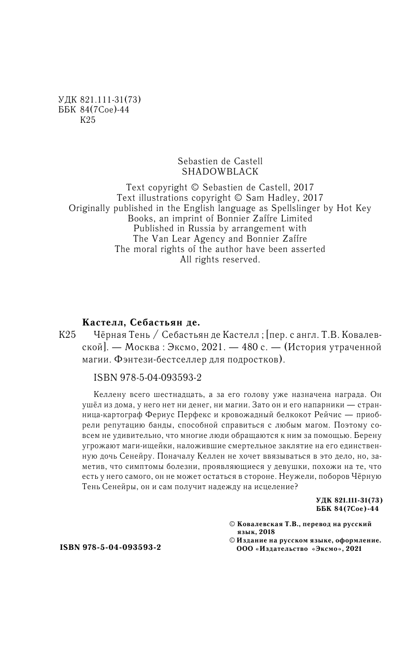 Книга: Чёрная Тень (Ковалевская Т.В. (переводчик), де Кастелл Себастьян); Эксмо, 2018