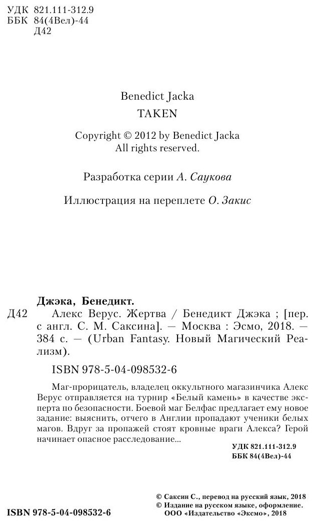 Книга: Алекс Верус. Жертва (Бенедикт Джэка); Эксмо, Редакция 1, 2018