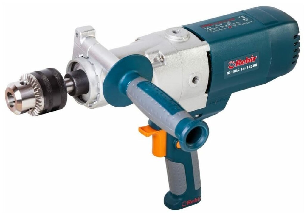 Rebir IE 1305-16/1450R – ручная сверлильная машинка, электрическая реверсивная, предназначена для сверления и рассверливания отверстий в сталях, цветных металлах, пластмассе, дереве и других материалах сверлами с коническими хвостовиками диаметром от 14.5 до 23 мм и, применяя переходную оправку и патрон, - сверлами с цилиндрическими хвостовиками. При наличии соответствующей перемешивающей насадки машинку можно использовать в качестве миксера.