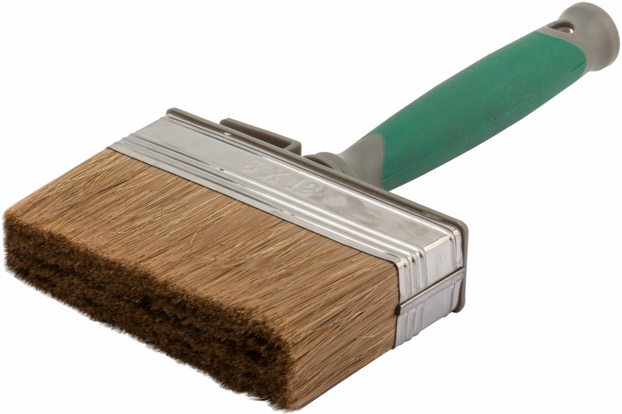 Высококачественный микс из темной натуральной и синтетической щетины (70% ПЭT/30% натуральная щетина). 75% топс. Оптимально подходит для лазурей, пропиток, антисептиков. Нержавеющий обжим. Эргономичная прорезиненная .