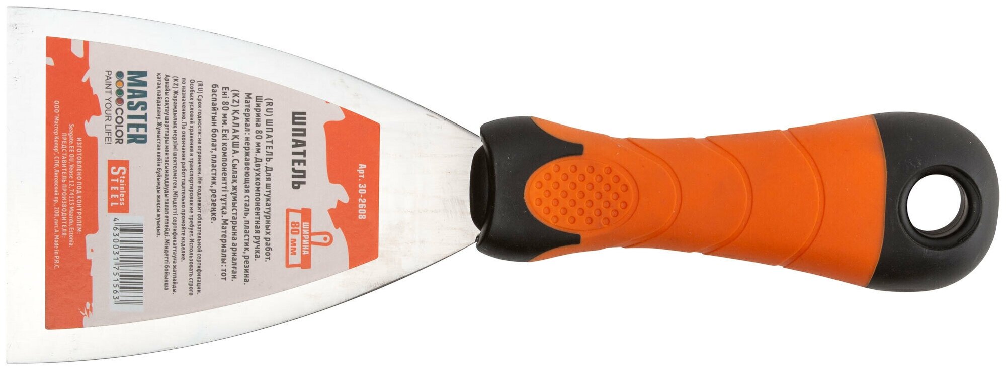 Шпатель Master Color станет незаменимым инструментом в отделочных работах. Его рабочая часть изготовлена из высококачественной нержавеющей стали, устойчивой к коррозии, а рукоятка с прорезиненным противоскользящим покрытием выполнена в эргономичной форме, придающей инструменту комфорт в использовании.