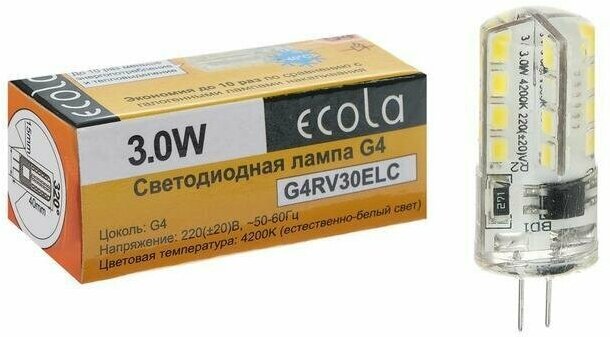 Лампа светодиодная G4 5.5 Вт 220 В 4200 К Ecola Corn Micro 45x16мм LED G4 LED Corn Micro, 3W42, 220V G4RV30ELC