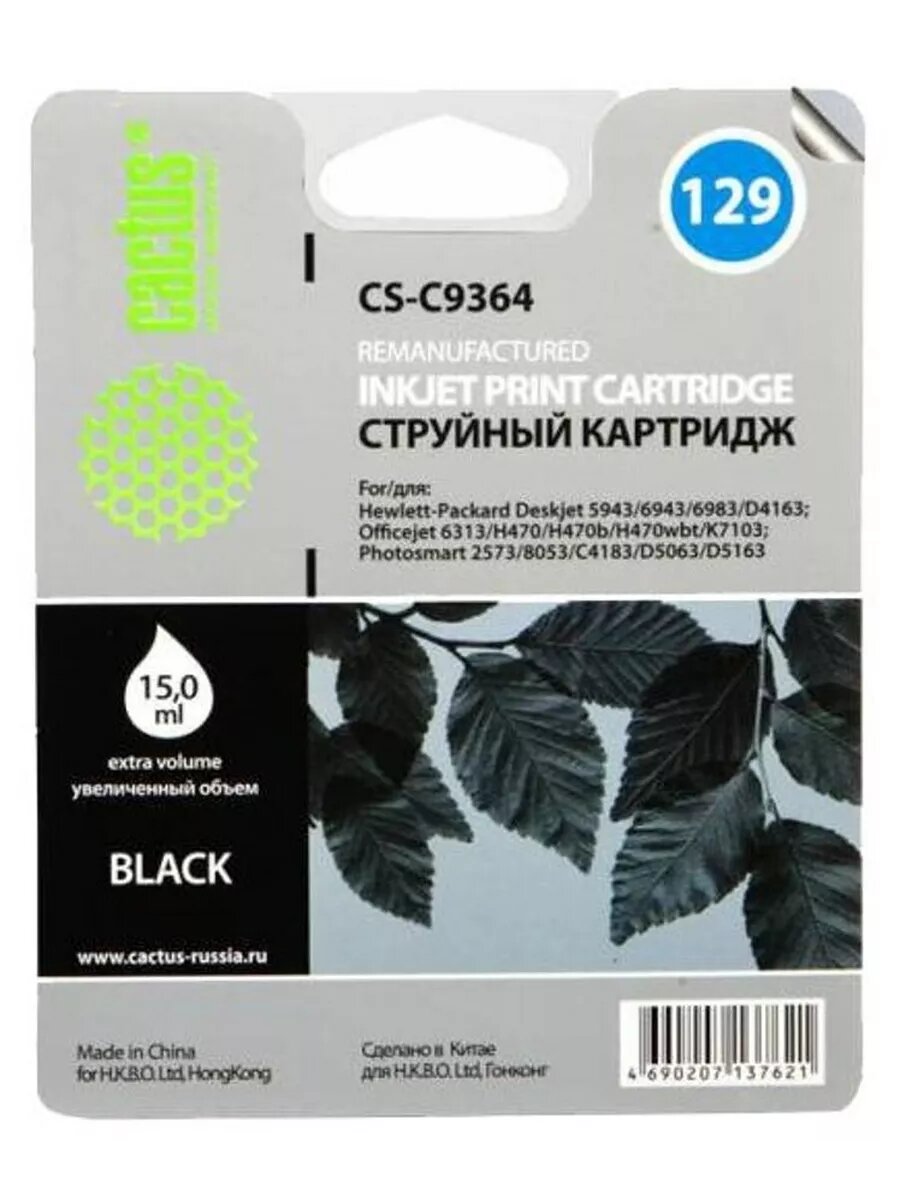 Картридж Cactus №129 для HP Photosmart8053/8753/5943/2573;DeskJet 5900series/5940 черный