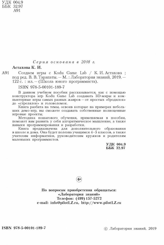 Сервис сравнения цен СкидкаГИД предлагает сравнить цены на товар «Книга: Создаем игры с Kodu Game Lab (Астахова Ксения Ивановна); Лаборатория знаний, 2019»