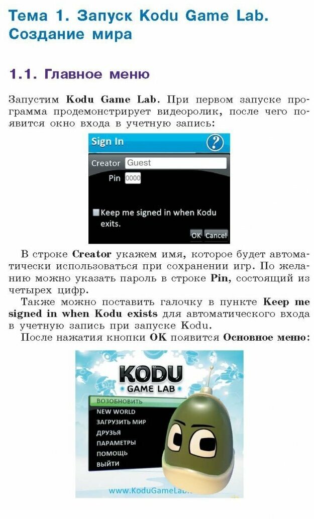 В данном учебном пособии рассказывается, как с помощью конструктора игр Kodu Game Lab создавать SD-миры и компьютерные игры самых разных жанров - от простых "бродилок" до "стрелялок" и головоломок.