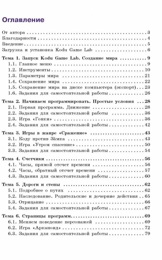 Книга интересная и полезная: сначала автор знакомит читателя с азами программы Codu Game Lab, а затем предлагает перейти к созданию 3D-игр. Первые игры легкие, затем их сложность увеличивается.