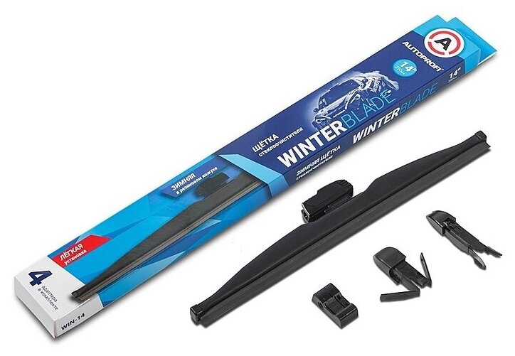 Щетка стеклоочистителя зимняя в резиновом кожухе Autoprofi WIN-14 350 мм служит для очищения лобового стекла автомобиля в зимний период. Модель эффективно справляется с наледью и снегом. Стальной каркас отличается повышенной прочностью. Современный состав из резины обеспечивает превосходное скольжение щетки по стеклу. Щетки стеклоочистителя Autoprofi серии Winter разработаны специально для зимней эксплуатации. Благодаря резиновому кожуху механизм каркаса щетки не замерзает и не покрывается коррозией. Увеличенная рабочая резинка изготовлена из морозостойких компонентов методом литья под давлением и покрыта противоизносным составом на основе тефлона. Все это обеспечивает идеальную очистку стекла в самых суровых условиях, тихую работу щетки и большой ресурс работы. Щетки комплектуются 4-мя универсальными адаптерами, что позволяет установить их на большинство современных автомобилей.