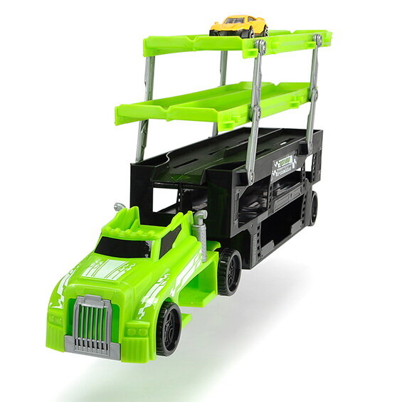 Игрушечный автовоз Dickie оснащен 5 парковочными уровнями, на которых вмещается до 36 классических маленьких машинок, ваш маленький автолюбитель сможет расставить свою коллекцию машинок по местам, и они не будут лежать ровным слоем по квартире. С верхних уровней машинки могут выезжать через дверцу в радиаторе грузовика-транспортера прямо на трек. Игрушки выполнены из пластика высокого качества, устойчивого к ударам и деформациям.