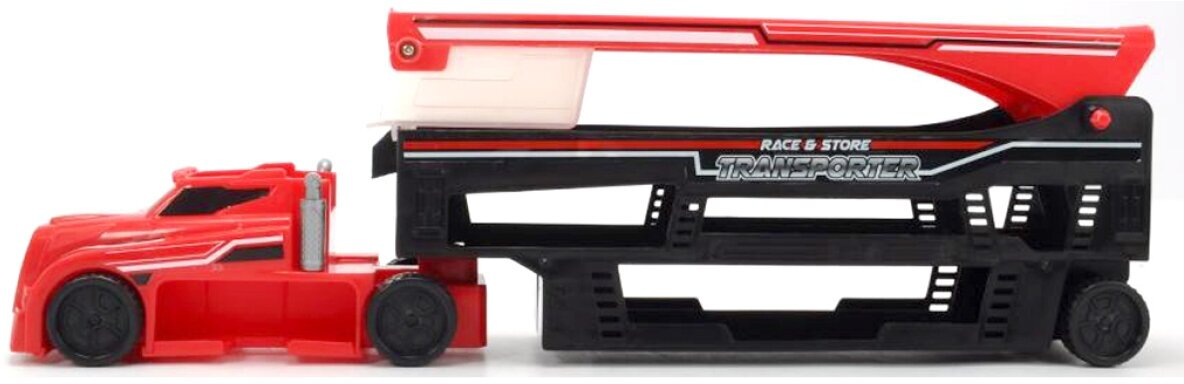 В наборе представлен не только реалистичный автовоз с уровнями для размещения транспортных средств, но и миниатюрная машинка. Всего трейлер вмещает 28 машинок, поэтому мальчишки смогут расставить всю свою автоколлекцию. На корпусе автовоза и дополнительной машинки есть вращающиеся колеса со свободным ходом, поэтому дети смогут катать игрушки и тренировать мелкую моторику рук. Особенно эффектно будет выглядеть выезд машинки с приподнятой грузовой платформы через кабину трейлера.