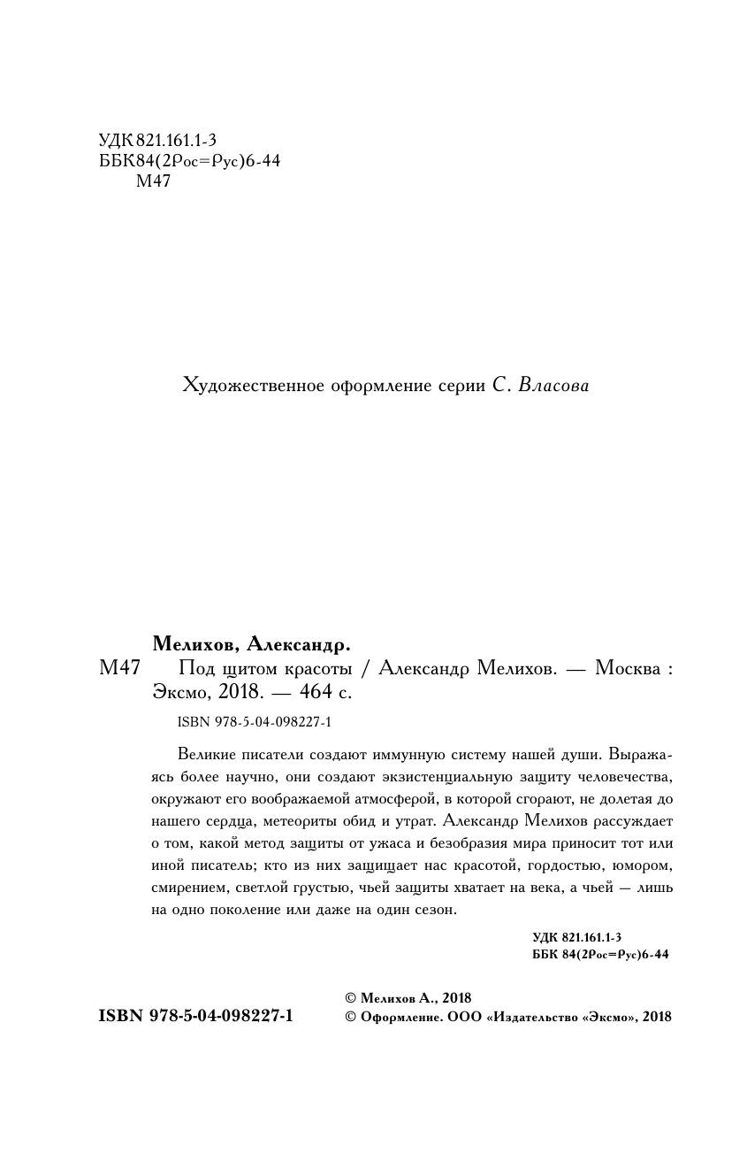 Книга: Под щитом красоты (Мелихов Александр Мотелевич); ООО "Издательство "Эксмо", 2018