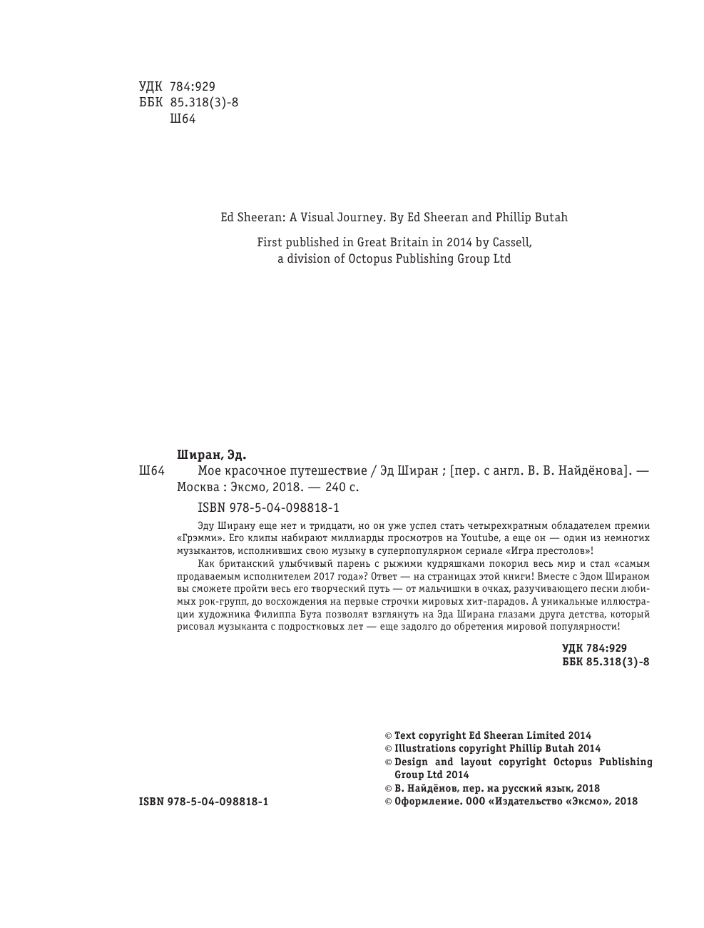 Эта книга - настоящая мечта любого фаната Эда Ширана. Очень интересно было узнать весь творческий путь такого артиста мирового уровня.