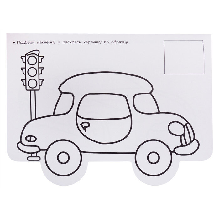 В этой книге с вырубкой в виде машинки маленького автомобилиста ждет много-много картинок-раскрасок и много-много наклеек.