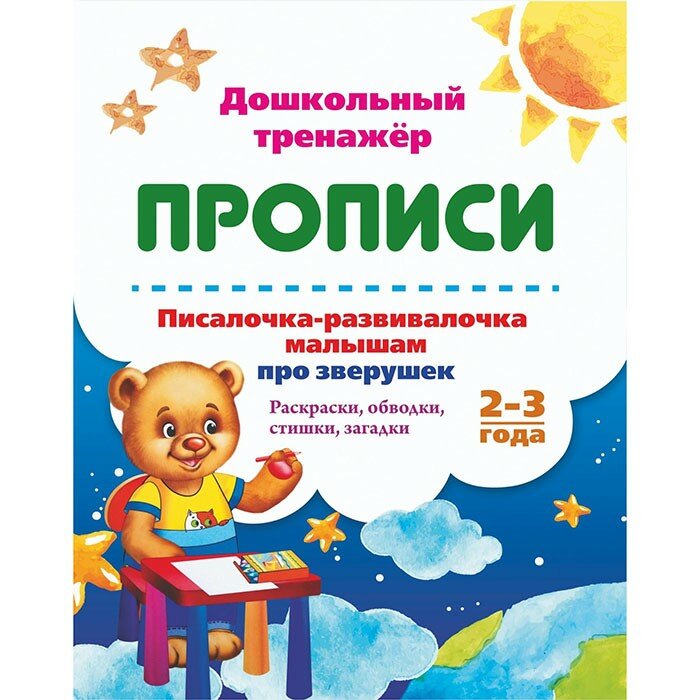 Сервис сравнения цен СкидкаГИД предлагает сравнить цены на товар «Книга: Прописи. Писалочка-развивалочка малышам про зверушек. Раскраски обводки стишки загадки. 2-3 года (без автора); Учитель, 2018»