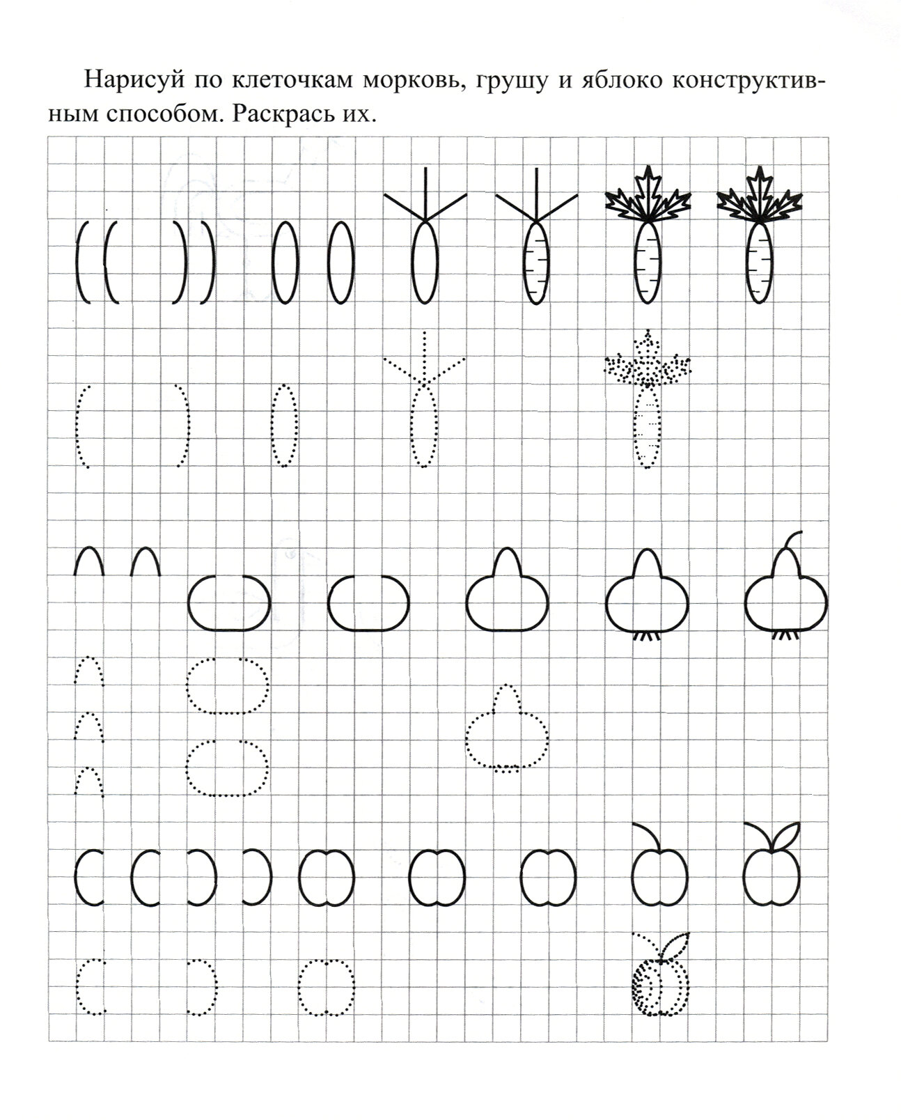 Представленный вариант прописи по клеточкам поможет ребенку подготовить руку к письму. Элементы прописи даны в несложном виде - ребёнку достаточно просто обвести линии по контуру. Также ребёнок сможет самостоятельно раскрасить картинки, встречающиеся на страницах книги, или попытаться выполнить элемент самостоятельно, продолжив рисовать его после данного образца. За время занятий с прописью ребенок разовьет мелкую моторику рук, подготовит руку к письму.