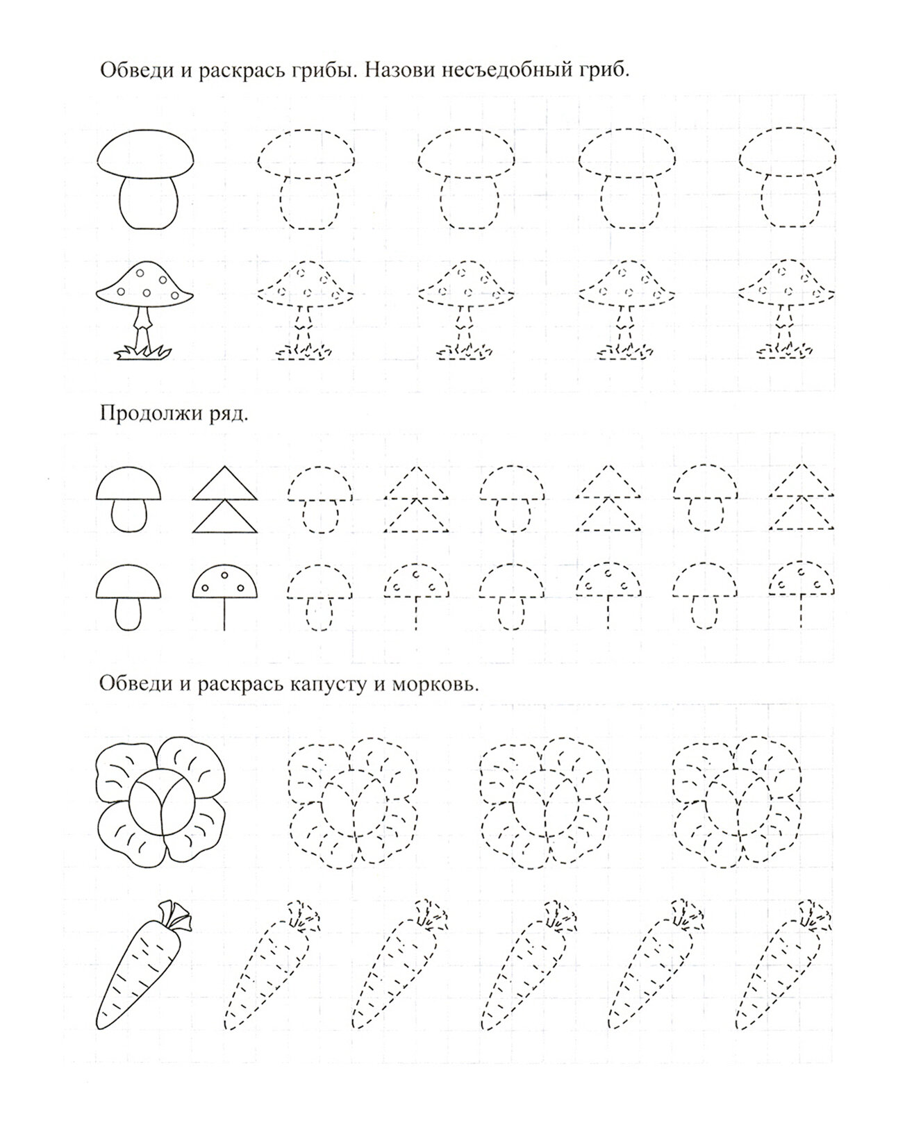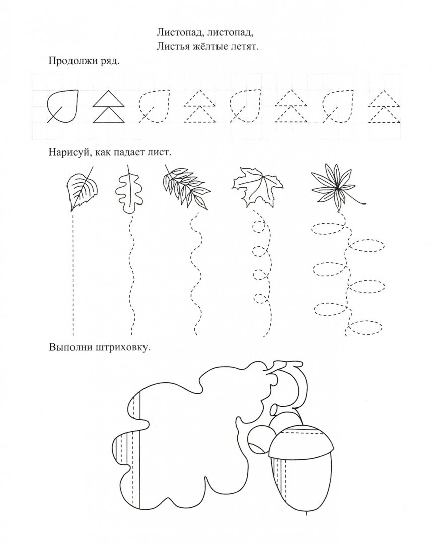 Небольшое пособие, однако заданий много. Все задания построены на фоне изучения времен года. Например, дорисуй дождик осенью, обведи грибы по пунктиру и выбери съедобные несъедобные грибы. Само пособие небольшого размера, поэтому и сами картинки некрупные. Ребенка задания увлекают, но только в качестве дополнительных занятий. Как основной материал пособие не подходит.