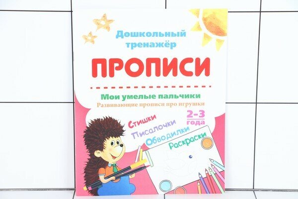 В этом может помочь данная пропись. Книжечка недорогая, в мягкой обложке. Небольшая. Но она будет способствовать обучению ребёнка самым простым вещам. Обвести, раскрасить, освоить азы письма.